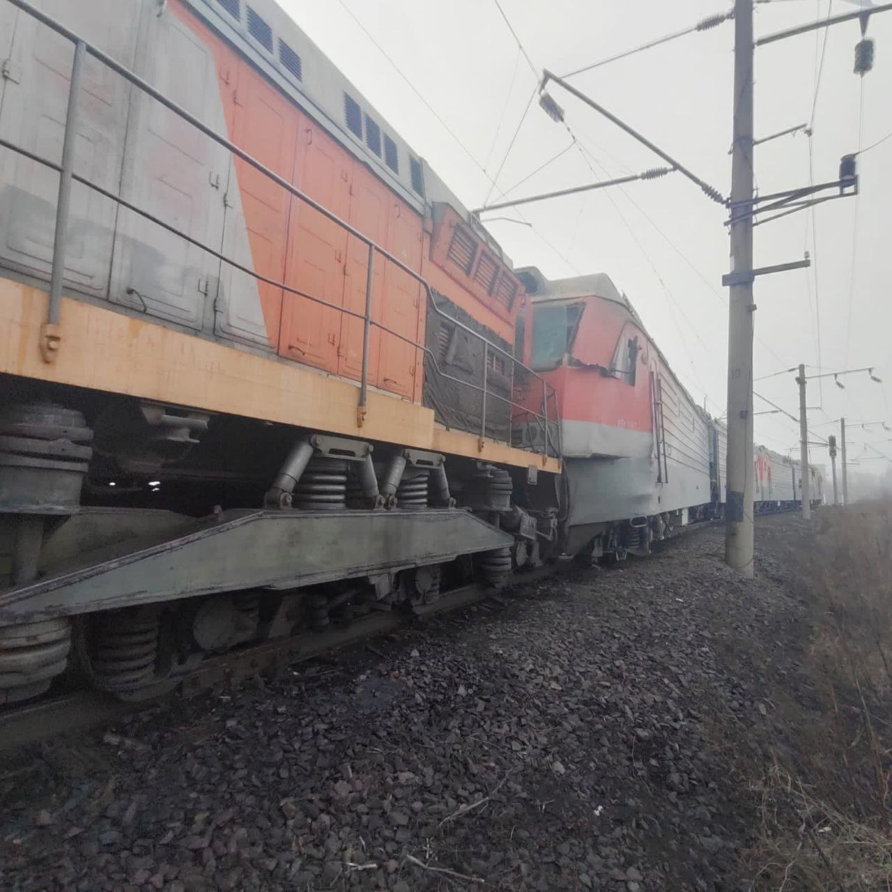 В результате инцидента сошли с рельсов оба локомотива и два товарных вагона. Жертв и пострадавших нет.