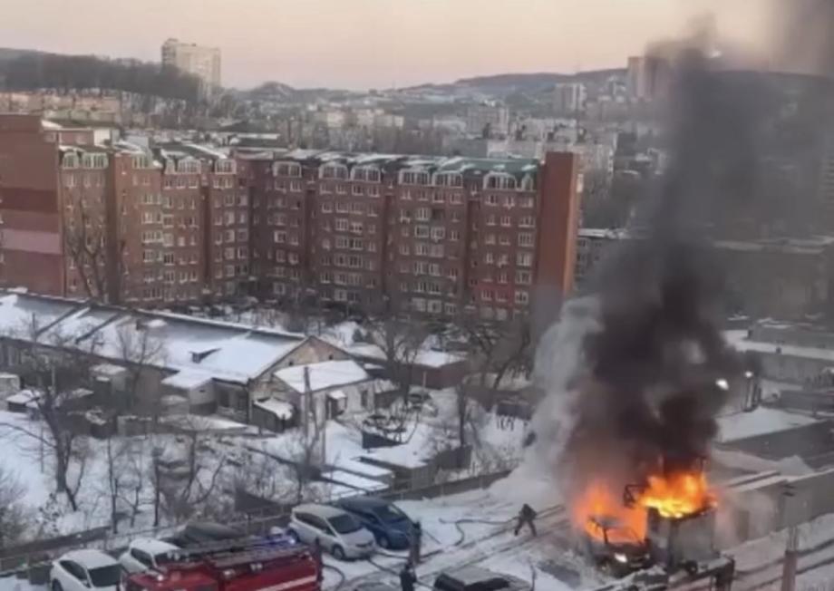 Во Владивостоке произошло возгорание автомобиля на автостоянке
