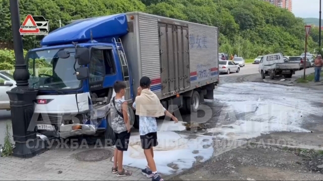 Жёсткое ДТП во Владивостоке: грузовик разбил две машины и врезался в столб — видео