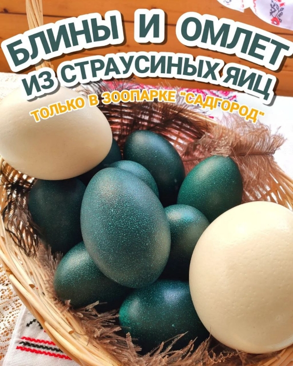 «Не за горами Масленица и наши Австралийские страусы каждый сезон несут яйца. Да не простые, а изумрудные! С 20 по 26 февраля у вас есть возможность попробовать уникальные блюда: блины и омлет на страусином яйце. „Zoo“ кафе на территории зоопарка „Садгород“ — единственное кафе в Приморском крае, где готовят такие уникальные блюда! Так же, можно сделать предварительный заказ, если планируете приобрести несколько порций», — рассказали представители зоопарка.