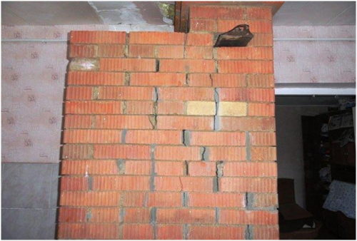 Особенно явно разрушение кирпичной кладки проявляются во второй половине зимы, когда продолжительность эксплуатации печи в зимний период после её ремонта уже велика, а вспучивание грунта под жилым домом достигает пика, по причине его полного промерзания. Особенно опасны разрушения и появления трещин в месте пересечения дымоходом, потолочного перекрытия, то есть вырывающиеся искры и пламя напрямую воздействуют на горючие конструкции потолка, что приводит к пожару.