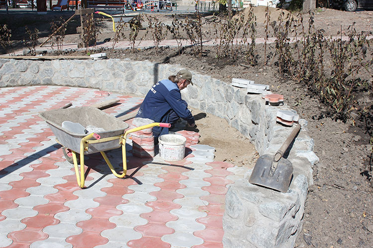 Обустройство зоны отдыха между городским рынком и универмагом близится к завершению – здесь укладывают брусчатку, высадили кустарники, а на новой детской площадке уже играют малыши.