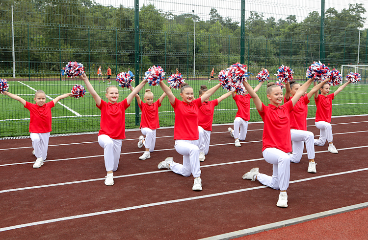 Современный физкультурно-оздоровительный комплекс включает в себя футбольное поле, баскетбольную и волейбольную площадки, беговые дорожки и трибуну для зрителей на 100 мест. Также в него входят две площадки с тренажерами – взрослая и детская, на которых размещены QR-коды, отсканировав которые, можно посмотреть видео-инструкции по использованию объектов.