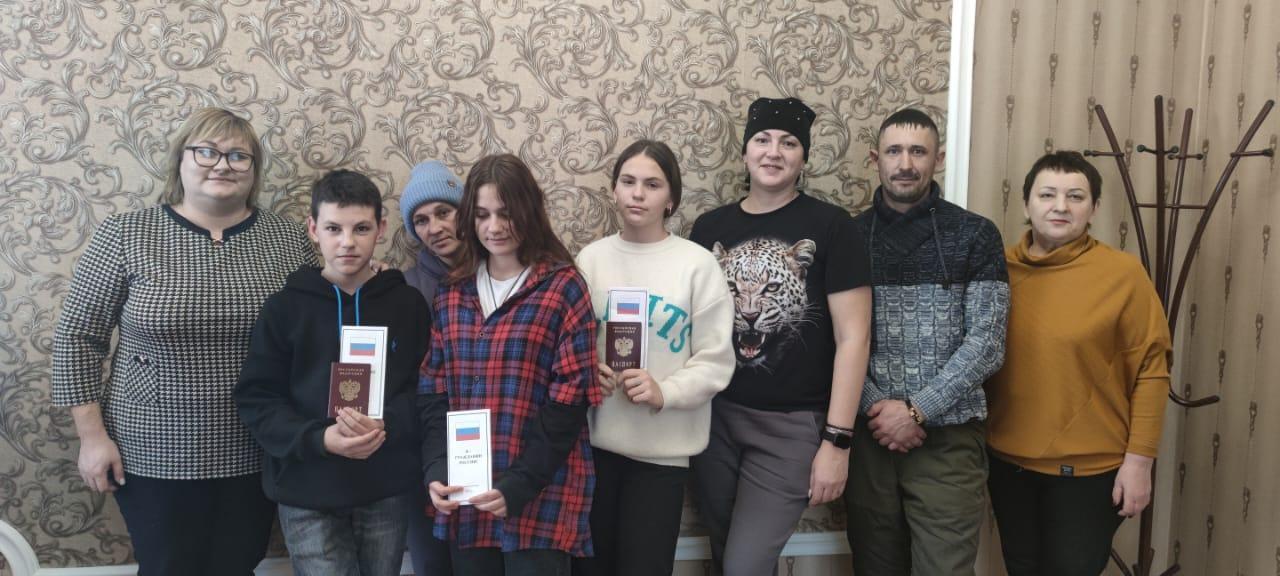 Паспорта и памятные подарки получили трое юных граждан Российской Федерации.