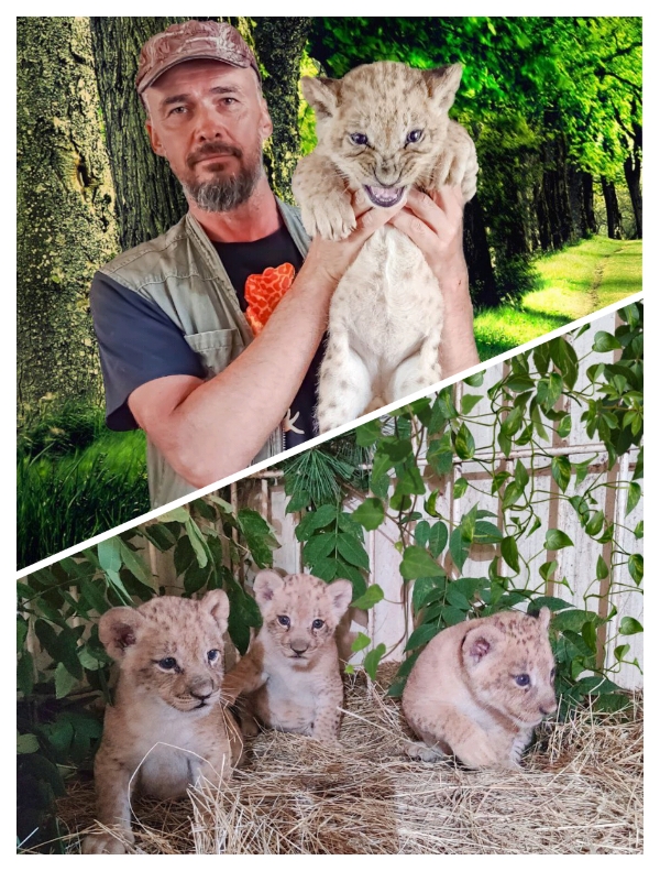 «Впервые за 10 лет лев Бонифаций стал отцом! В конце июля в семье львов появились на свет сразу 3 львёнка и все самцы! Представляете, сразу 3 будущих короля.