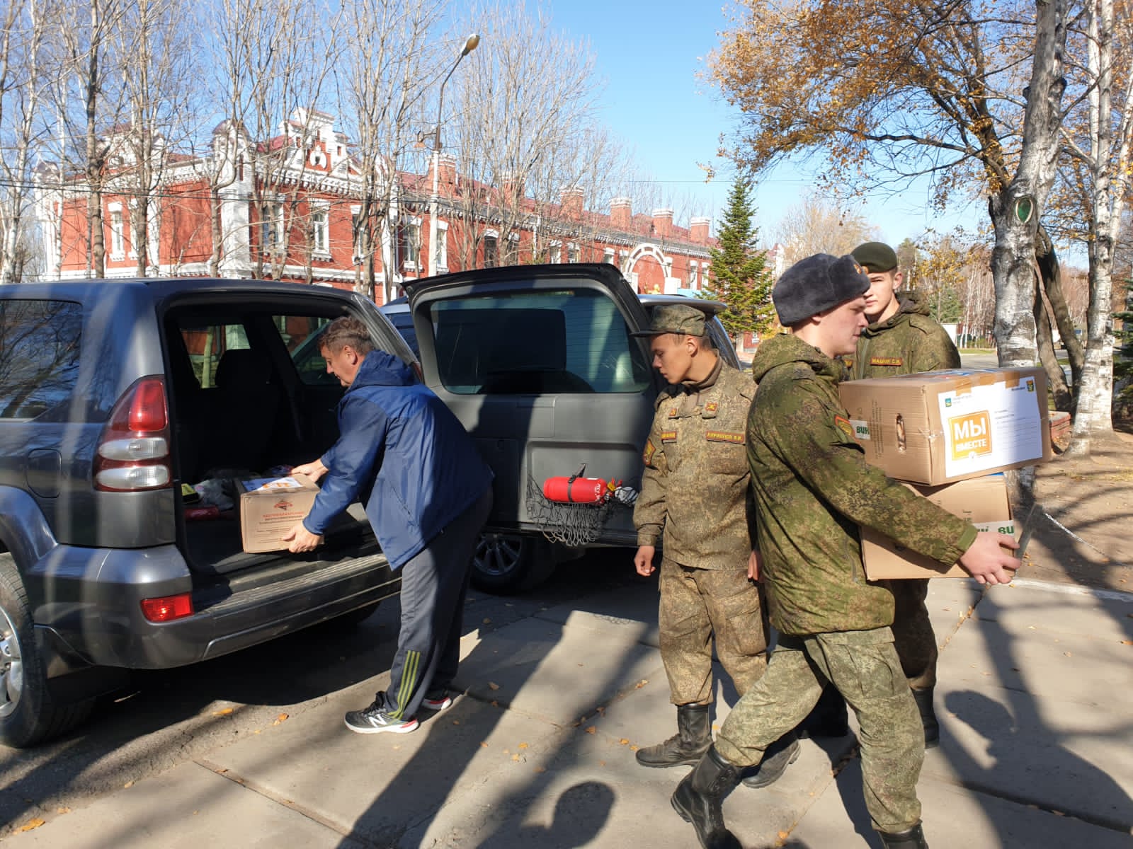 Председатель Думы Находкинского городского округа Кузнецов А.В., заместители председателя Серганов О.Л., Воронин Е.И., депутат Законодательного Собрания Приморского края Маноконов П.Р. лично доставили гуманитарную помощь мобилизованным находкинцам.