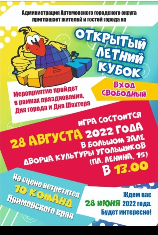 28 августа Дворец культуры угольщиков примет Открытый кубок команд КВН на приз главы Артемовского городского округа. Игры приурочены к Дню города.