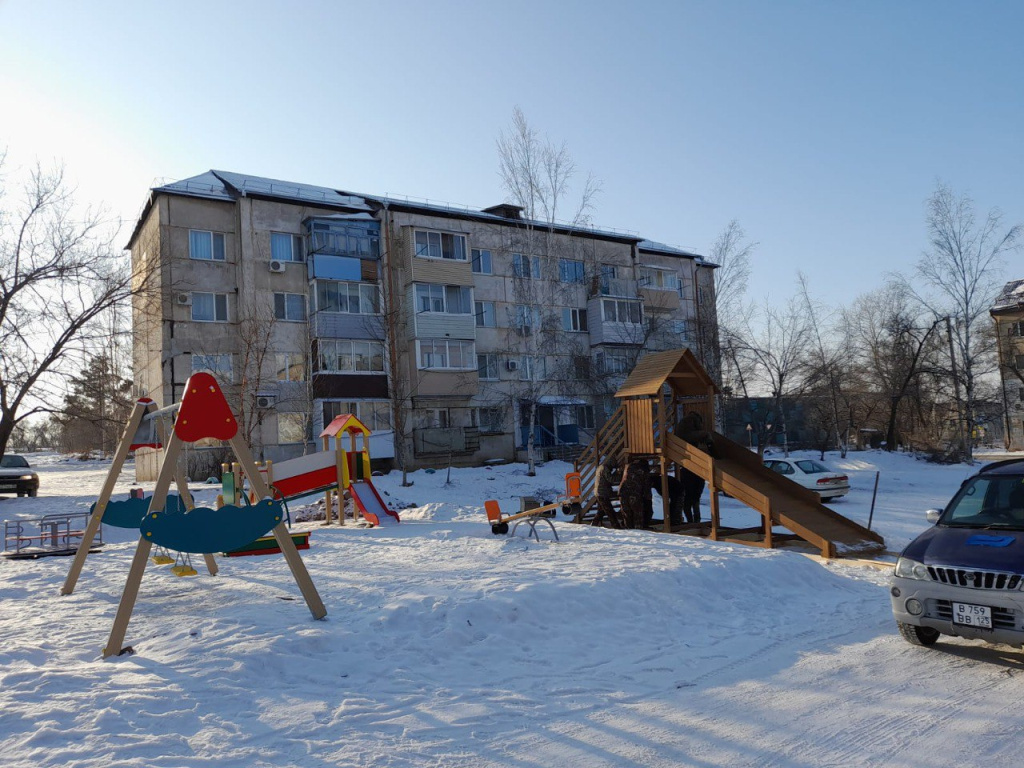 В рамках проекта, реализуемого инициативной группой граждан в микрорайоне пер. Высотный, участника победителя конкурса проектов, инициируемых жителями Приморского края, по решению вопросов местного значения, на придомовой территории была установлена детская площадка.