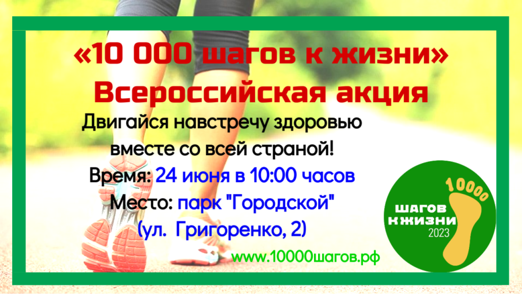 Всероссийская акция «10 000 шагов к жизни», приуроченная ко Дню молодежи, пройдет 24 июня в парке «Городской».