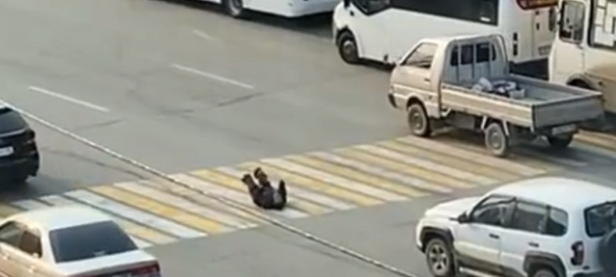 Как оказалось, данный гражданин – «местная знаменитость» Жители Артема бьют тревогу, неизвестный мужчина с ограниченными возможностями здоровья перекатывался по пешеходному переходу, несмотря на проезжающие мимо машины.