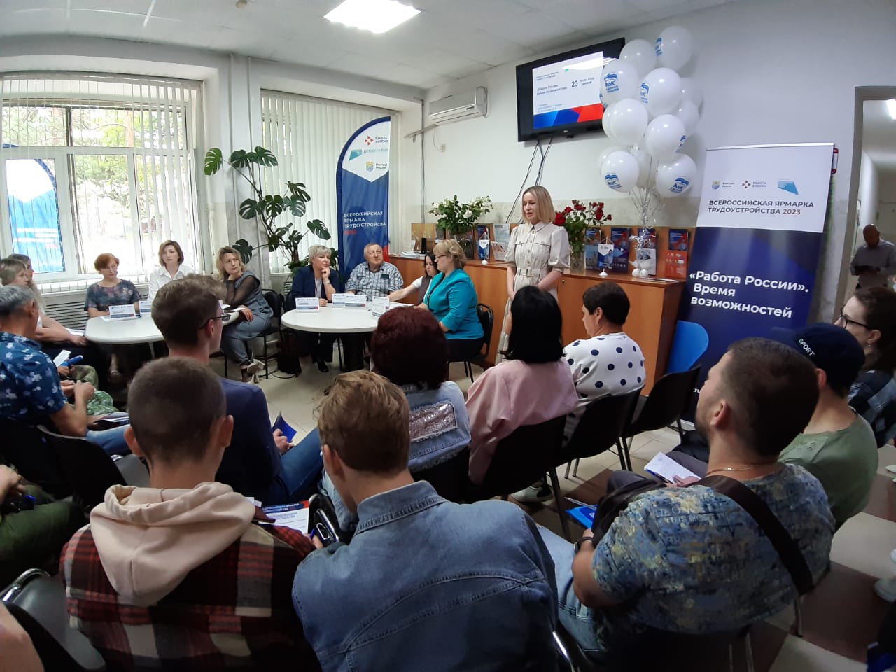 Сегодня в Центре занятости населения города Арсеньева состоялся второй федеральный этап Всероссийской Ярмарки трудоустройства «Работа России.