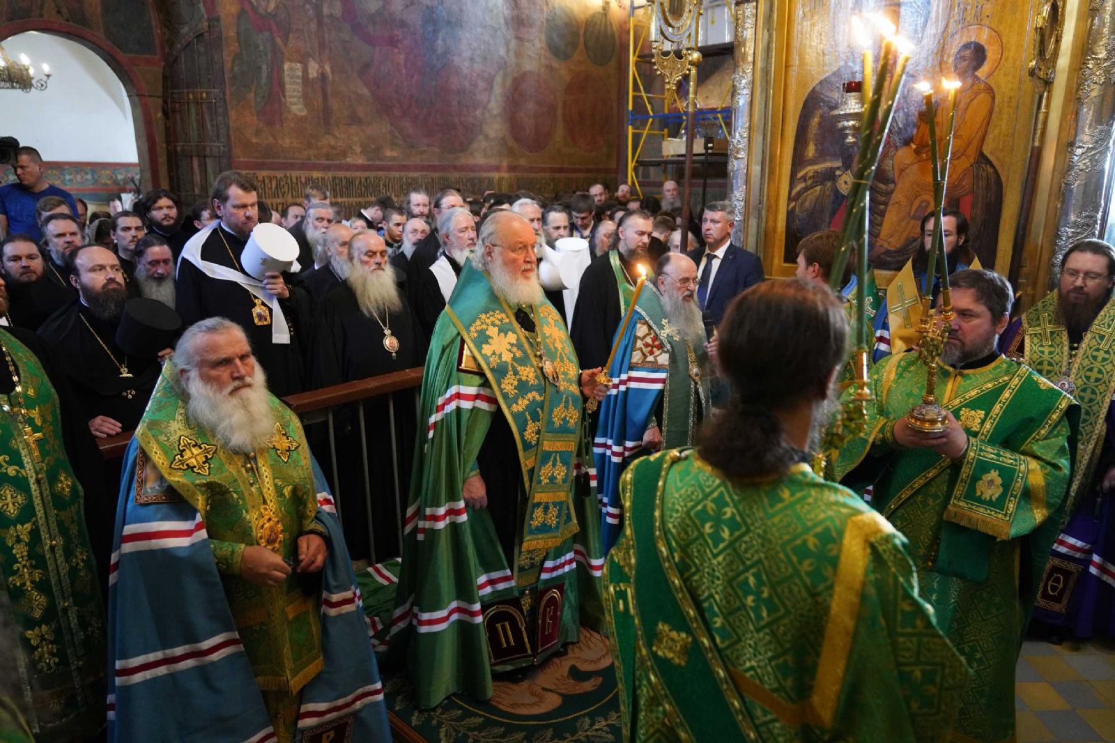 В этом году по моему ходатайству перед властями наш праздник украшен пребыванием в этом святом храме чудотворного образа Святой Троицы, написанного преподобным Андреем Рублевым. Это великая святыня земли нашей. Она соединяет нас с временем преподобного Сергия, тем самым временем, когда наша Русь, находясь в большой опасности от врагов внешних и внутренних, сосредотачивалась для того, чтобы по милости Божией стать в будущем великой державой. И мы знаем, что так и произошло.