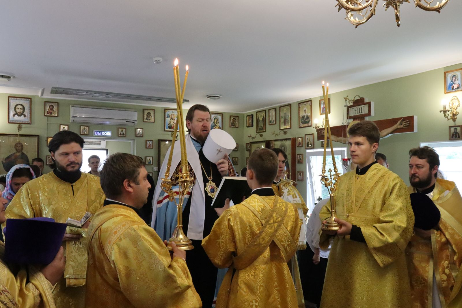 Его Высокопреосвященству сослужили благочинный I Владивостокского благочиния Владивостокской епархии, исполняющий обязанности благочинного II Владивостокского благочиния, настоятель храма протоиерей Сергий Шуталев; клирик Коломенской епархии, настоятель храма Рождества Христова пос. Родники иерей Олег Занин; клирик Никольского храма г. Владивостока иерей Павел Иванчин; ответственный за организацию архиерейских богослужений иерей Дионисий Ищенко.