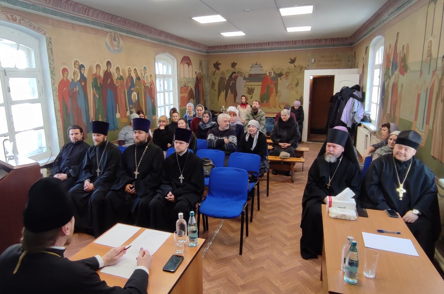 Среди тем обсуждения — определение места в притворе Покровского собора для распространения миссионерских листков, а также размещение информационных табличек с краткими житием и молитвой под иконами в храме.