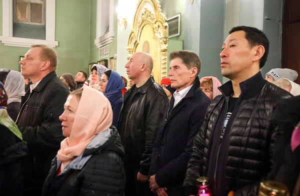 Губернатор Приморья Олег Кожемяко принял участие в соборном богослужении — Великой Пасхальной вечерне в ночь на воскресенье, 16 апреля.Традиционно в канун Светлого Христова Воскресения храмы полны людей.