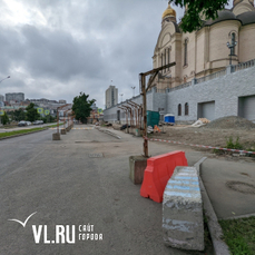 Жители Владивостока обратили внимание на отсутствие забора, который несколько лет отделял строительную площадку Спасо-Преображенского собора от тротуара на Корабельной Набережной, и ряд бетонных блоков на проезжей части, перекрывший половину полосы движения.