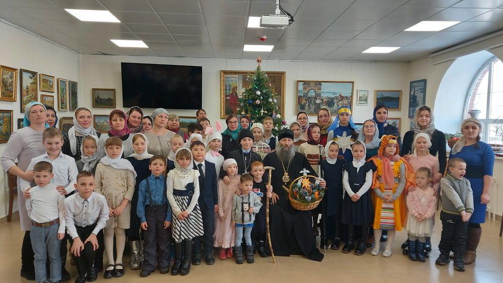 В конце праздника все дети получили от епископа Гурия сладкие архиерейские подарки. Затем в воскресной школе состоялось традиционное праздничное чаепитие, где ребята в дружеской, семейной атмосфере также рассказывали стихи, пели песни и колядки.