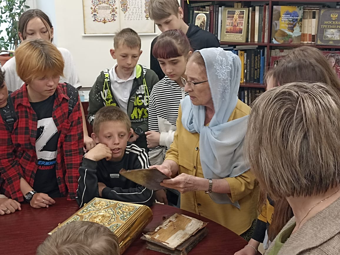 На встрече с Ириной Геннадьевной Бердниковой, руководителем ОРОиК Арсеньевской епархии, ребята узнали об истории славянской письменности и славянской азбуке.