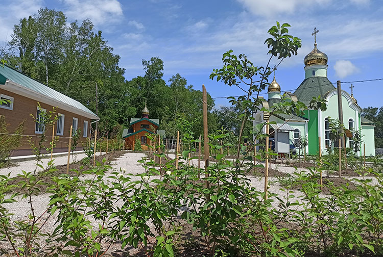 Это, как рассказывает старшая сестра, послушница Вера, подарок приходу от жителей города Фокино. Дарители, пожелавшие остаться неизвестными для общественности, в начале мая передали храму саженцы яблонь, груш, слив, облепихи, смородины, малины, крыжовника, жимолости, а еще декоративного кустарника, который окаймляет по периметру территорию сада как живая изгородь. Также жертвователи оплатили все работы по посадке растений и обустройству территории вокруг них.