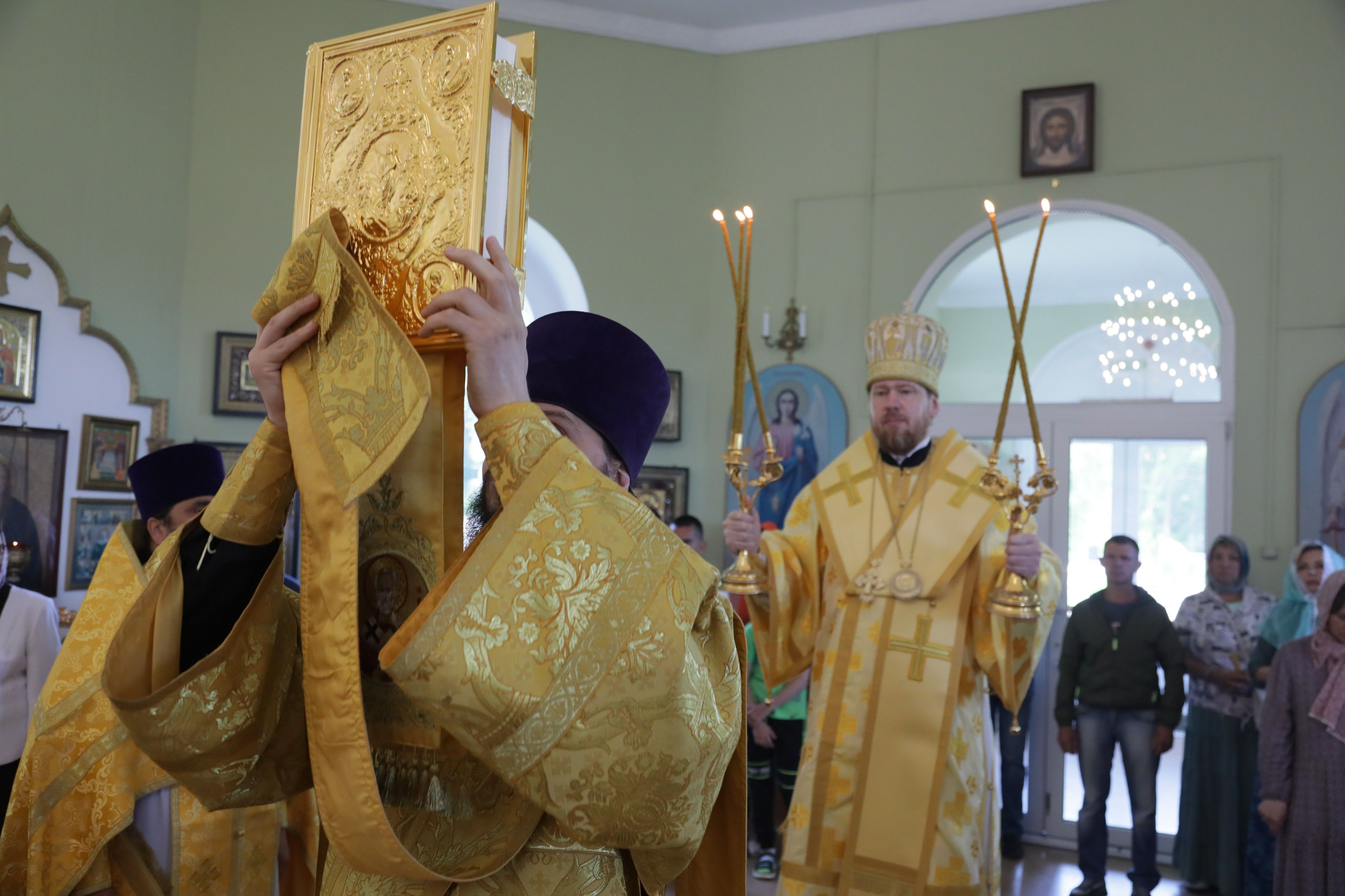 Его Высокопреосвященству сослужили: благочинный Надеждинского благочиния, настоятель храма протоиерей Евгений Маляр; благочинный Уссурийского благочиния протоиерей Андрей Машанов; благочинный Лучегорского благочиния протоиерей Димитрий Федорин; ответственный за организацию архиерейских богослужений иерей Дионисий Ищенко.