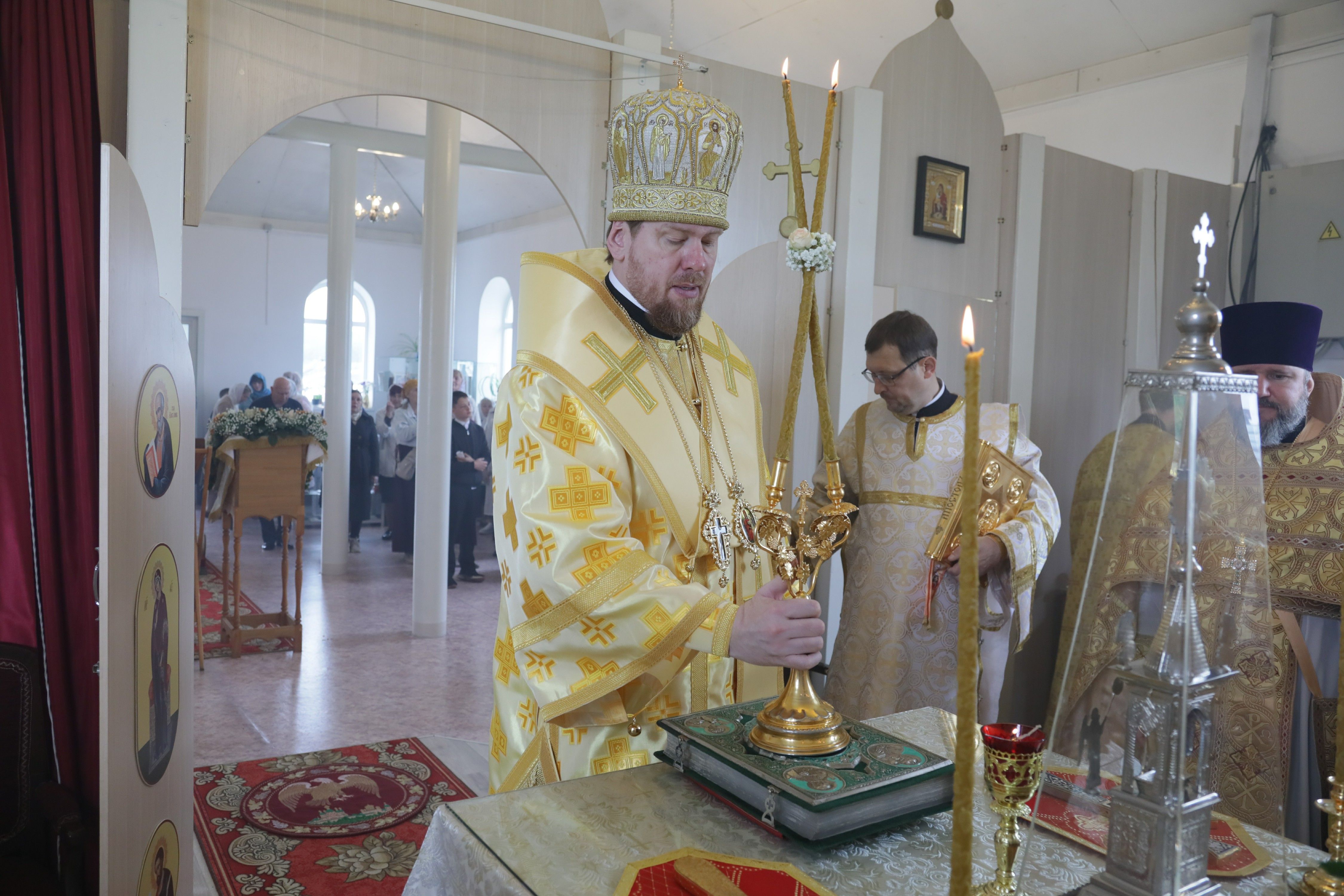 За Божественной литургией Его Высокопреосвященству сослужили: благочинный Уссурийского благочиния Владивостокской епархии, настоятель храма святителя Николая г. Уссурийска протоиерей Андрей Машанов; настоятель Покровского храма г. Уссурийска протоиерей Сергий Якутов; настоятель храма Всех святых, во всем мире просиявших, г. Уссурийска иерей Глеб Журавлев; ответственный за организацию архиерейских богослужений иерей Дионисий Ищенко.