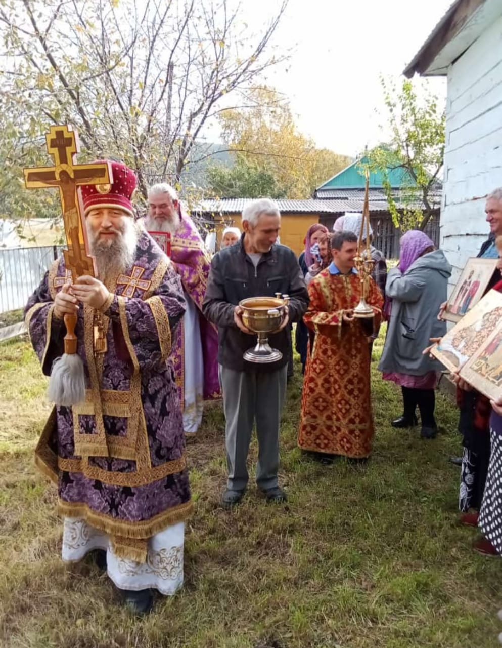 По окончании богослужения состоялся Крестный ход вокруг храма и праздничная трапеза.