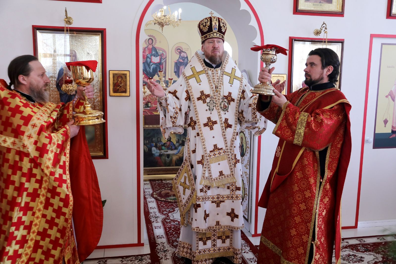 По отпусте литургии владыка Владимир возглавил славление и вознес молитву святым новомученикам и исповедникам Церкви Русской.