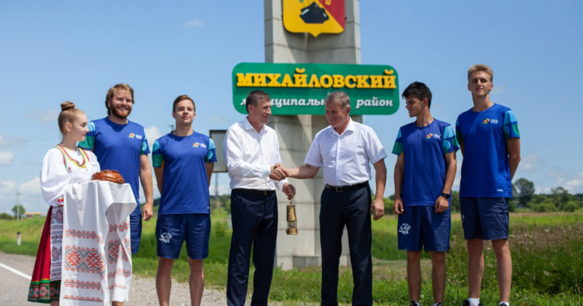 Факелоносцы международных спортивных детских игр «Дети Азии» добрались до следующей точки маршрута — Михайловского района.