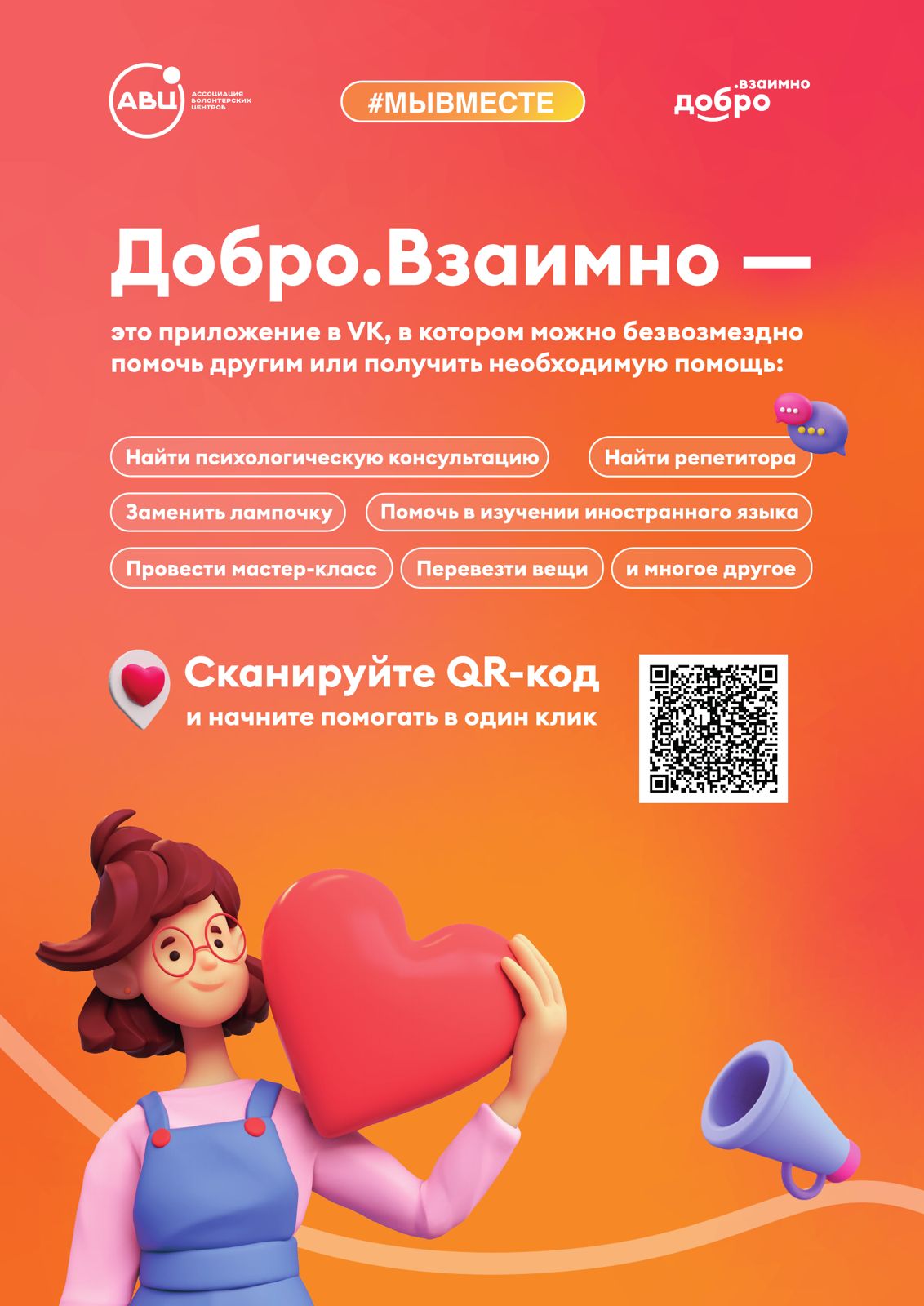 Сервис #Добро.Взаимно даёт возможность предоставлять безвозмездные услуги, делиться временем и бесплатно оказывать помощь тем, кто в этом нуждается,