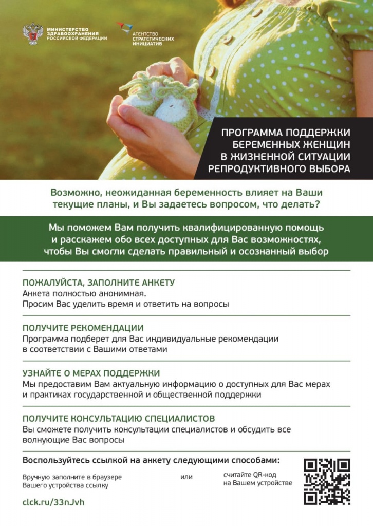 В нашей стране действует программа поддержки беременных женщин, находящихся в жизненной ситуации репродуктивного выбора.