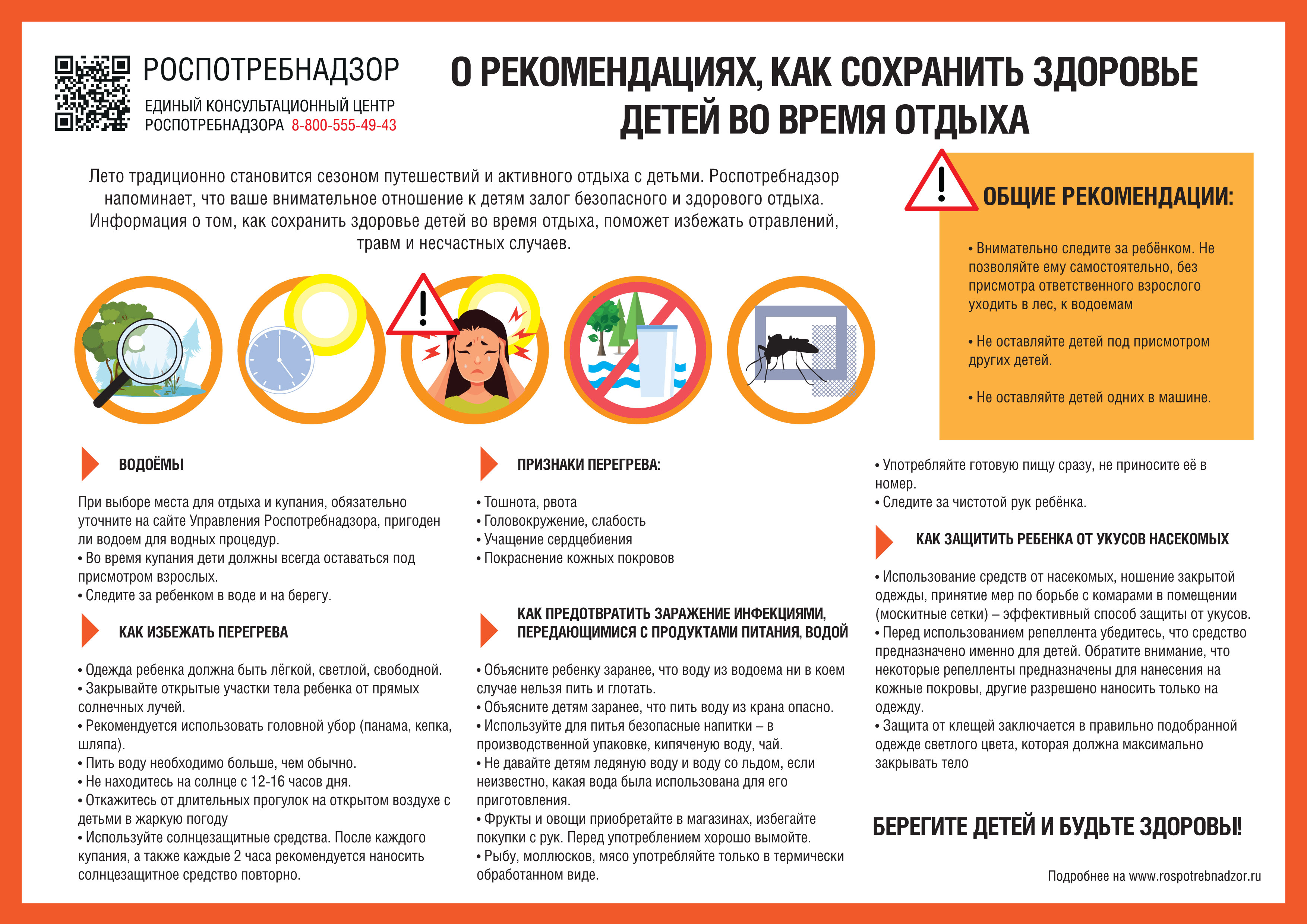 Лето традиционно становится сезоном путешествий и активного отдыха с детьми. Роспотребнадзор напоминает, что внимательное отношение к детям залог безопасного и здорового отдыха. Информация о том, как сохранить здоровье детей, поможет избежать отравлений, травм и несчастных случаев.