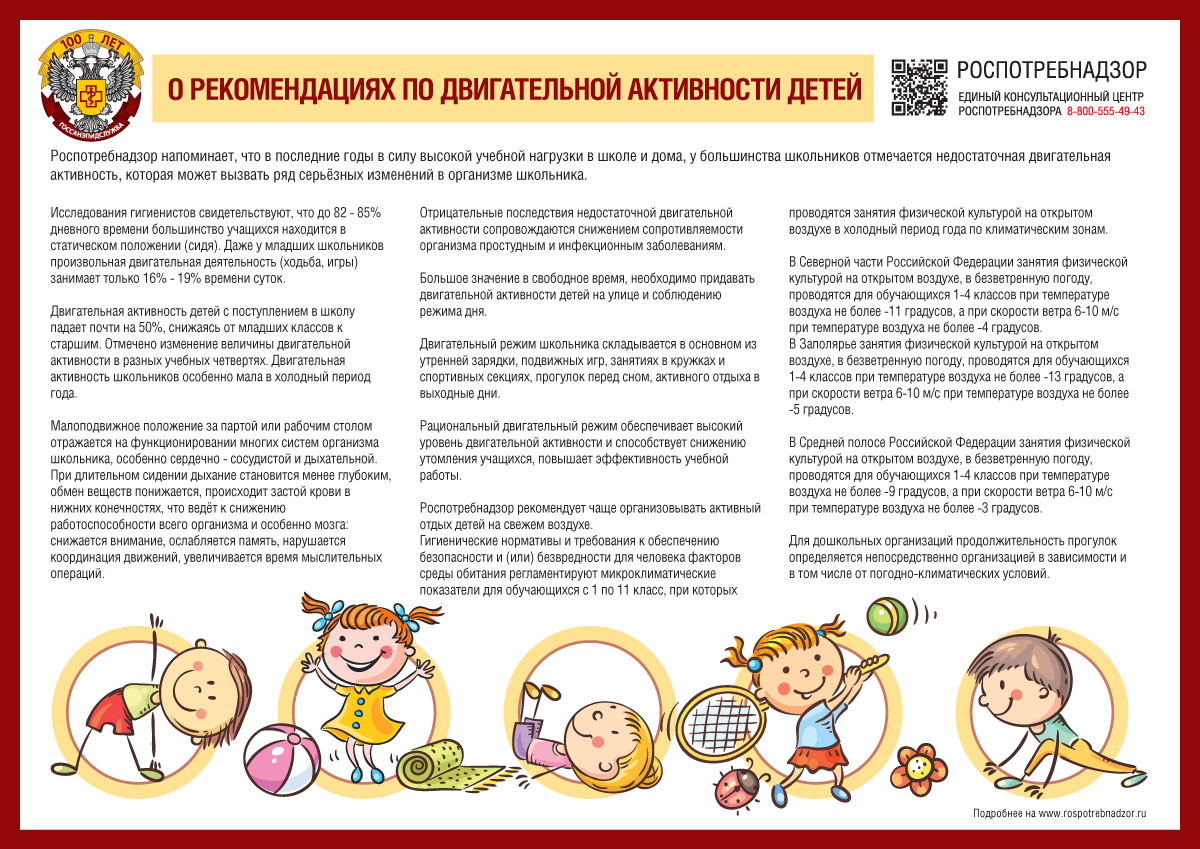 Роспотребнадзор напоминает, что в последние годы в силу высокой учебной нагрузки в школе и дома, у большинства школьников отмечается недостаточная двигательная активность,