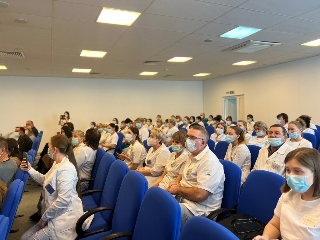 «Я очень признательна всем, кто нашел время и смог сегодня посетить нас! Встреча в таком формате проводится впервые. Хочу поблагодарить родителей моих коллег за то, что они воспитали замечательных сыновей и дочерей! Я очень рада, что ваши дети, войдя в структуру перинатального центра, стали членами нашей большой и дружной семьи. Мы постараемся выявить для каждого именно то направление, которое позволит реализоваться его профессиональному потенциалу в наибольшей степени. У нас в перинатальном центре развито наставничество, работает система финансовой поддержки молодых специалистов – безусловно, есть возможности для профессионального роста и перспективы развивать свои компетенции», - обратилась к аудитории Татьяна Курлеева.