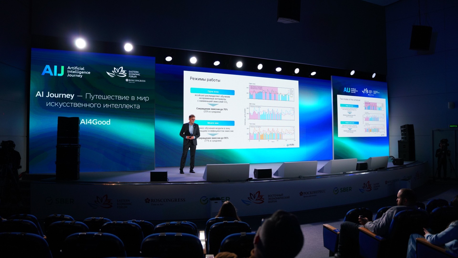 «Когда мы обучаем какую-то большую модель с помощью сверхмощного компьютера, нам важно уменьшить углеродный след и научить систему, разработанную с применением ИИ, решать ту или иную задачу, а круг этих задач очень широкий. Например, мы можем помогать вычленять какие-то неочевидные паттерны в поведении сложных природных систем. Так, на полях ВЭФ с помощью Центра искусственного интеллекта, созданного при ДВФУ, мы представили весьма нетривиальную задачу по предсказанию движения циклонов. Циклоны, как природное явление, очень неочевидное даже с точки зрения физики. И с помощью ИИ мы можем просчитывать движение циклонов, детектировать их и косвенно прогнозировать физические риски последствий этих циклонов» , — рассказал Семен Буденный. Фото: Пресс-служба СбербанкаРуководитель Центра прикладного ИИ «Сколтех», ведущий научный сотрудник Института AIRI Евгений Бурнаев рассказал о том, какие задачи можно решать с помощью искусственного интеллекта и привел примеры проектов, которыми занимается центр. По его словам, мониторинг и сбор данных, обнаружение, анализ и прогнозирование являются главными функциями, которые используются, например, в предотвращении чрезвычайных ситуаций — возникновении лесных пожаров, распространении различных загрязнений.