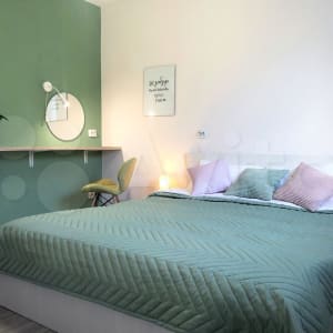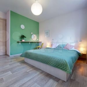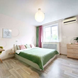 Квартира расположена в тихом зеленом спальном районе, в пешей доступности автобусные остановки, супермаркеты, кафе, аптеки. Рядом (в соседнем здании) медицинский центр «Святая Мария» (ЭКО).