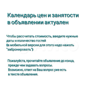 ❗ Стоимость меняется в зависимости от количества проживающих, сезона, выходных/праздников и длительности проживания. Для уточнения цен и занятости введите в окошко нужные даты и количество проживающих. (В мобильной версии- нажмите для этого "забронировать", это Вас ни к чему не обязывает)